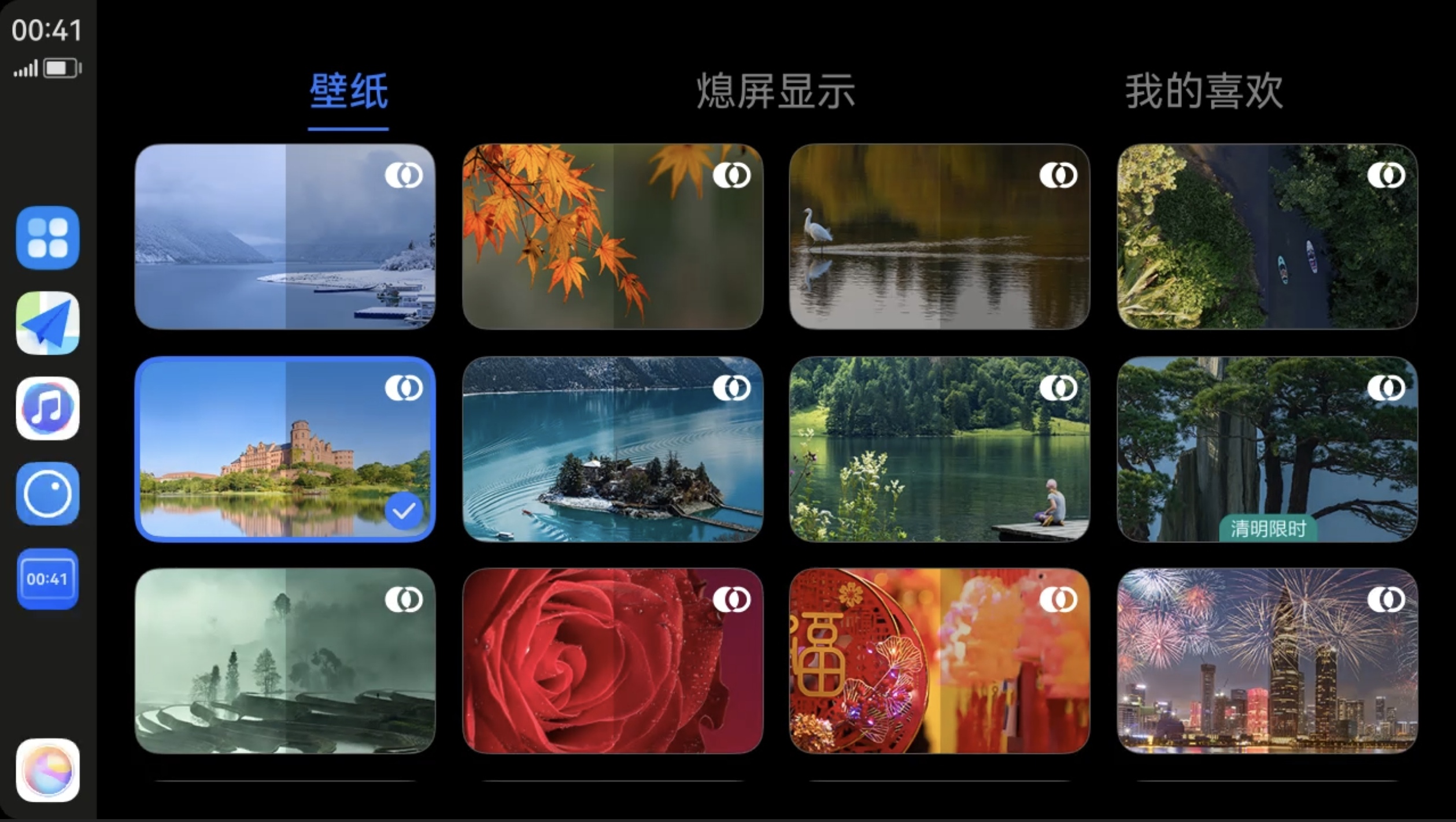 部分壁纸支持深浅模式,将会根据HiCar深浅模式的变化自动切换为对应模式的壁纸。