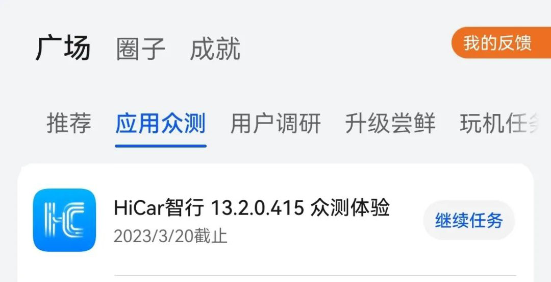 您只有报名参加了HiCar体验官任务,并获得批准之后,才会收到HiCar相关的众测任务。具体报名参加HiCar体验官任务的方式请参见报名参加HiCar体验官。